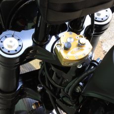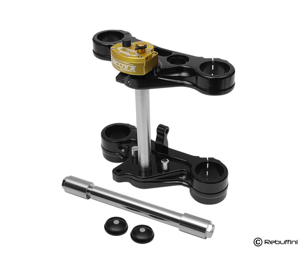 Our Indianapolis triple tree comes pre-arranged for the steering stabilizer Scott by Ohlins.