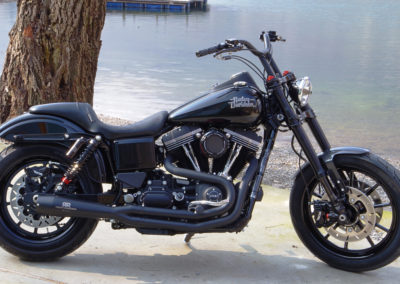 We supplied for this project: Atlantis hand controls, Delta grips set, Indianapolis triple tree with headlight, Newton air cleaner, Atlantis Racing forward controls.