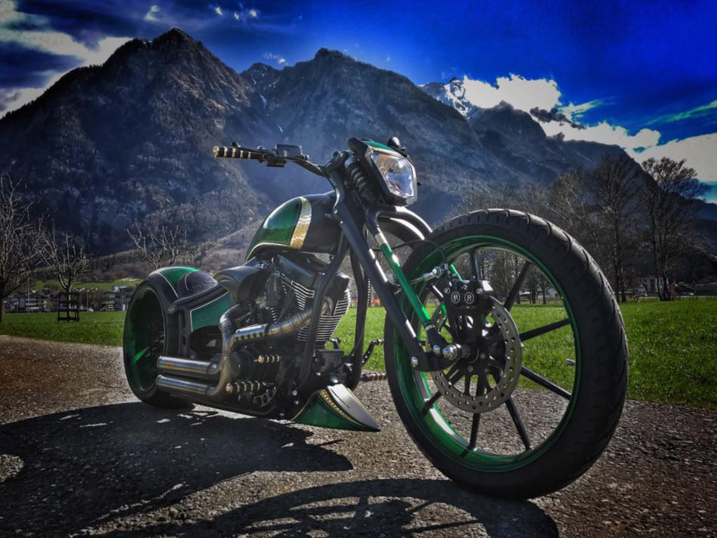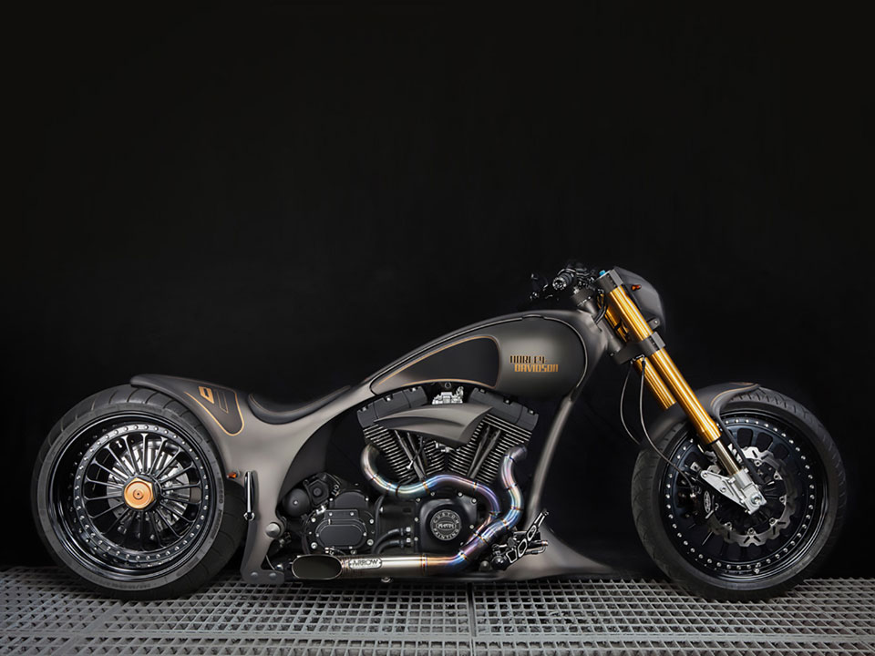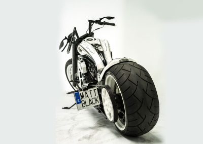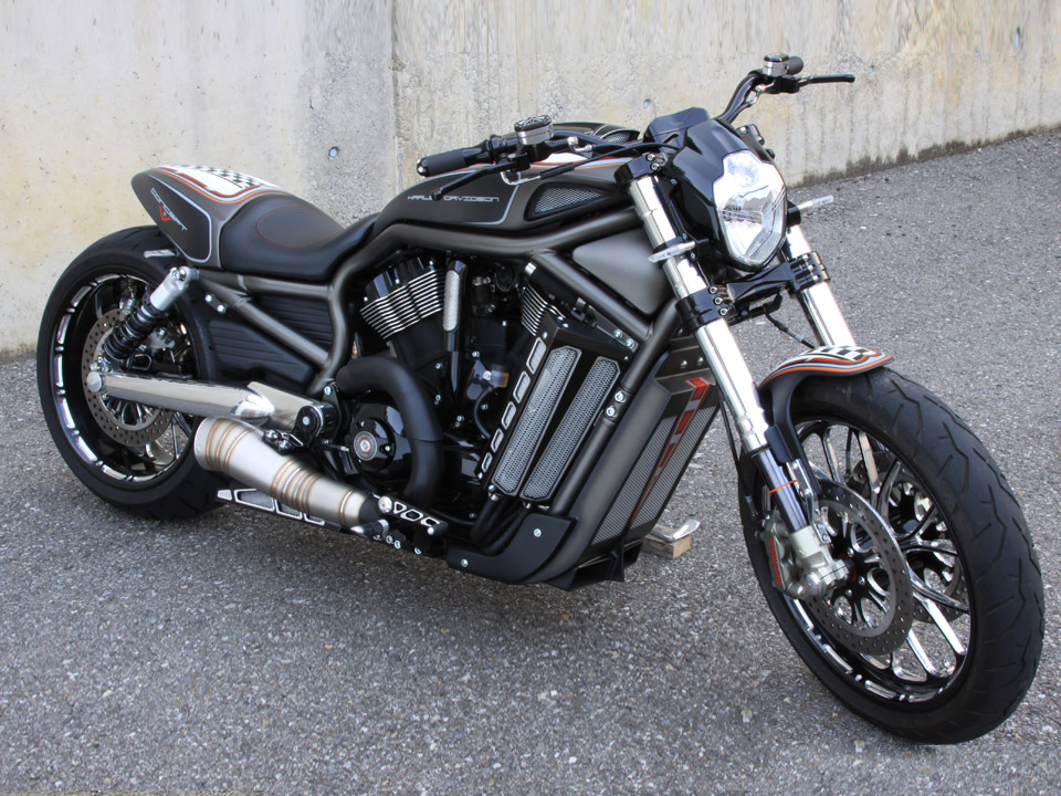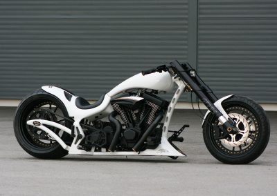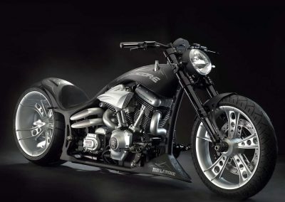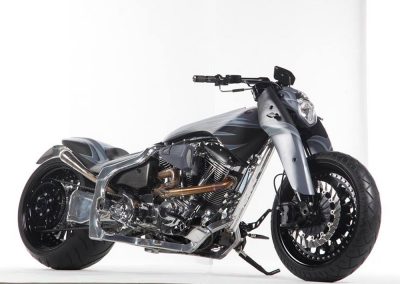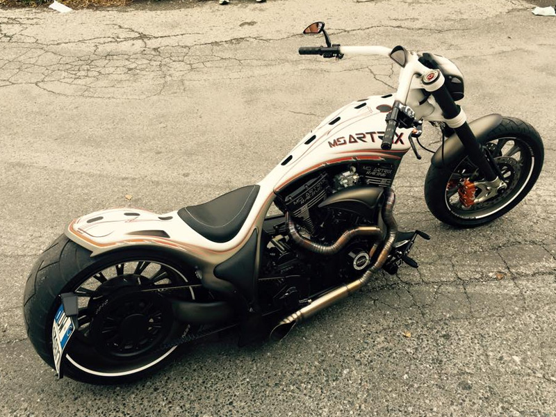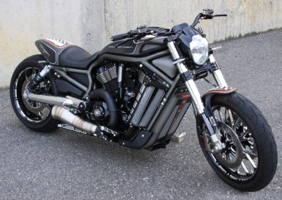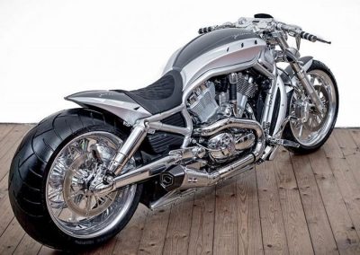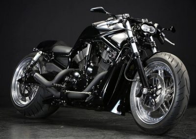 We supplied for this project: comet hand and forward controls for VRod, delta grips, apus mirrors