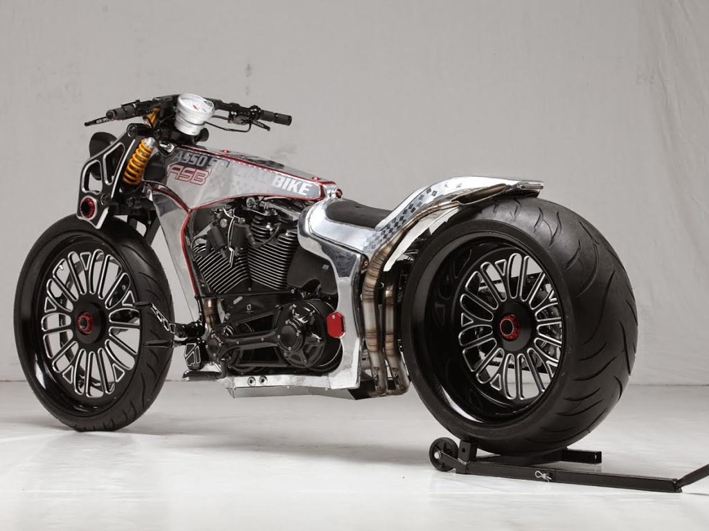 We supplied for this project: SR45 hand controls and grips, indianapolis triple tree with headlight, atlantis forward controls, newton air cleaner