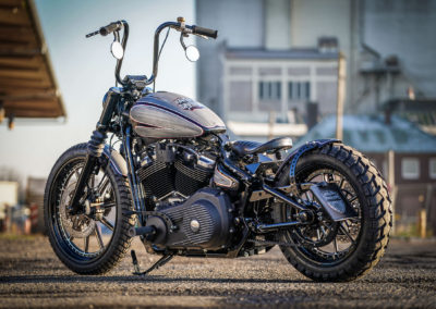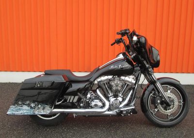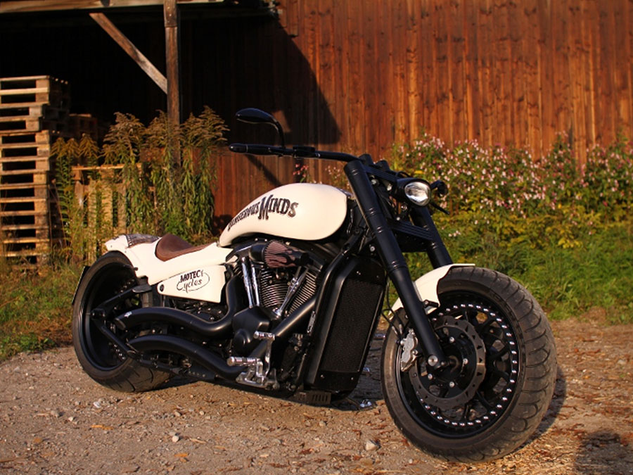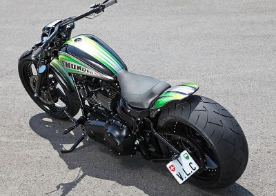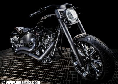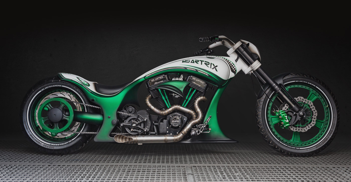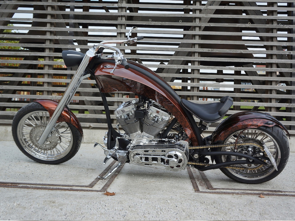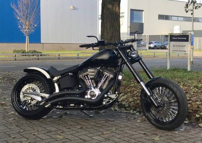 We supplied for this project: stargate air cleaner, ellipse hand and forward controls, delta grips, apollo 13 mirrors, MB clutch housing, MB Twin Cam cover