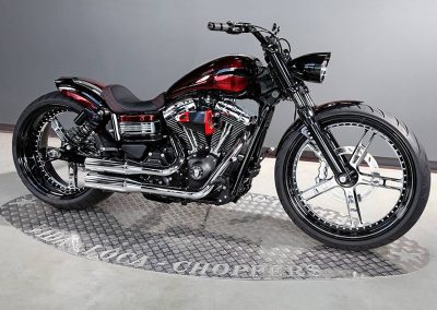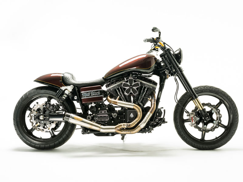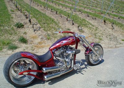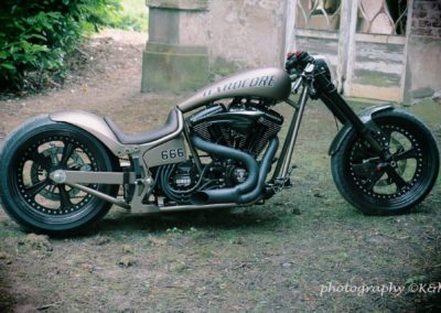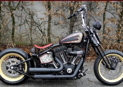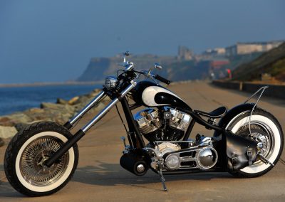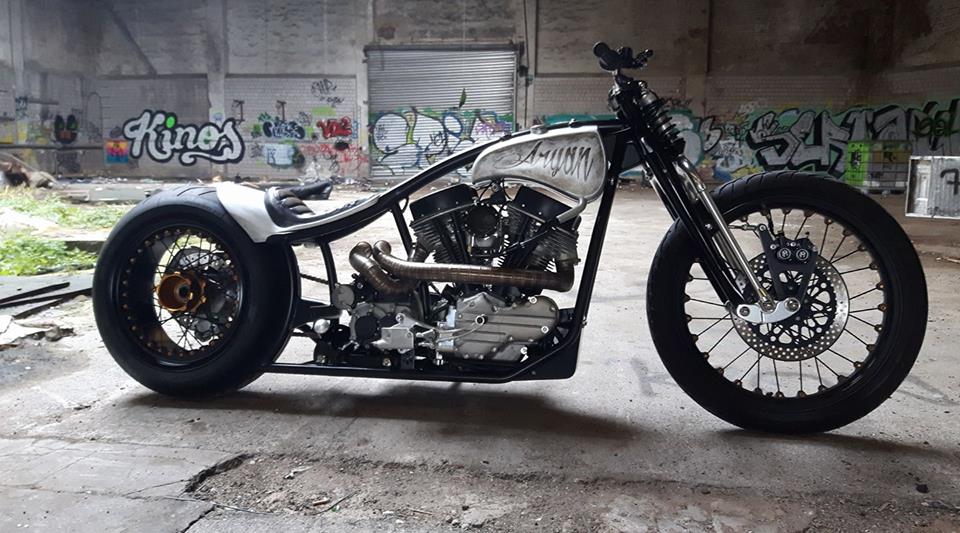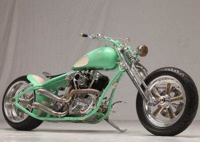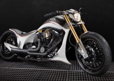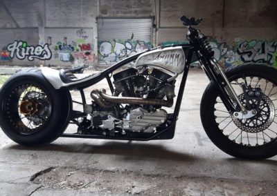 We supplied for this project: atlantis hand controls,grips & forward controls, newton air cleaner, Indianapolis triple trees with Marzocchi lower legs