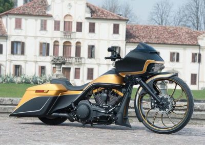 We supplied for this project: mugello wheels, stargate air cleaner, derby cover, point cover, fuel tank door cover, rea mast/cylinders covers & grips, star saddlebag latch covers and more