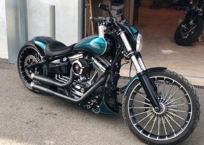 We supplied for this project: Break triple tree, Atlantis Racing forward controls, Kalipso brake caliper